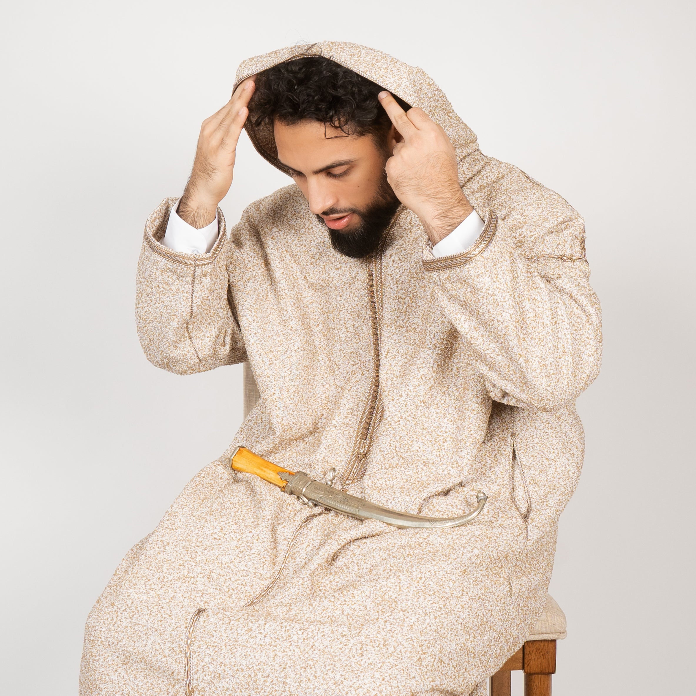 A radiant, scholarly Djellaba that embodies elegance and commands quiet respect.