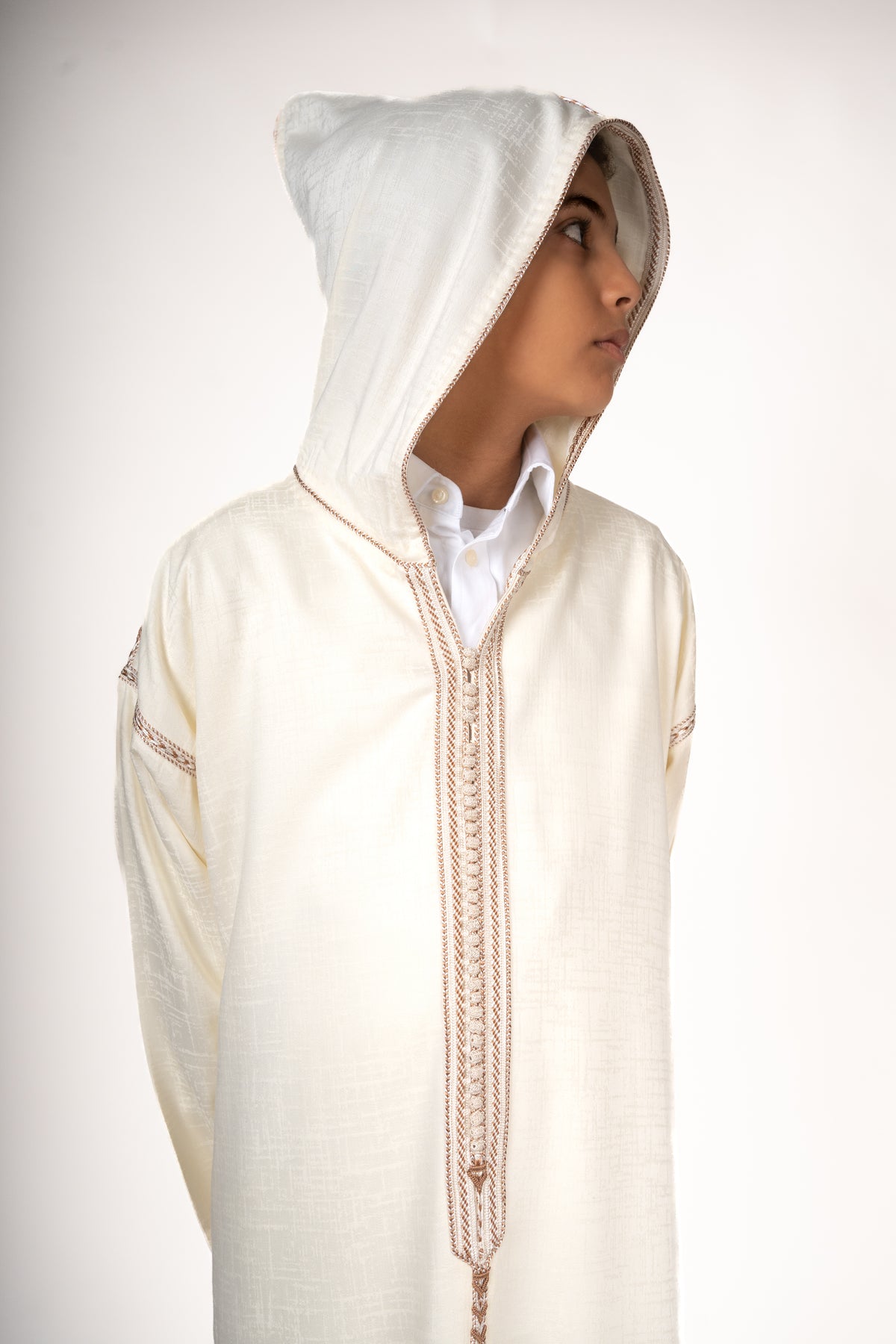 Elevate your child’s wardrobe with our premium Gold Label Kids Djellaba Mlifa Élite. Crafted from supreme Mlifa fabric and finished entirely by hand, this piece brings the same luxury and craftsmanship of our adult Gold Label collection—now in a perfectly tailored youth size.