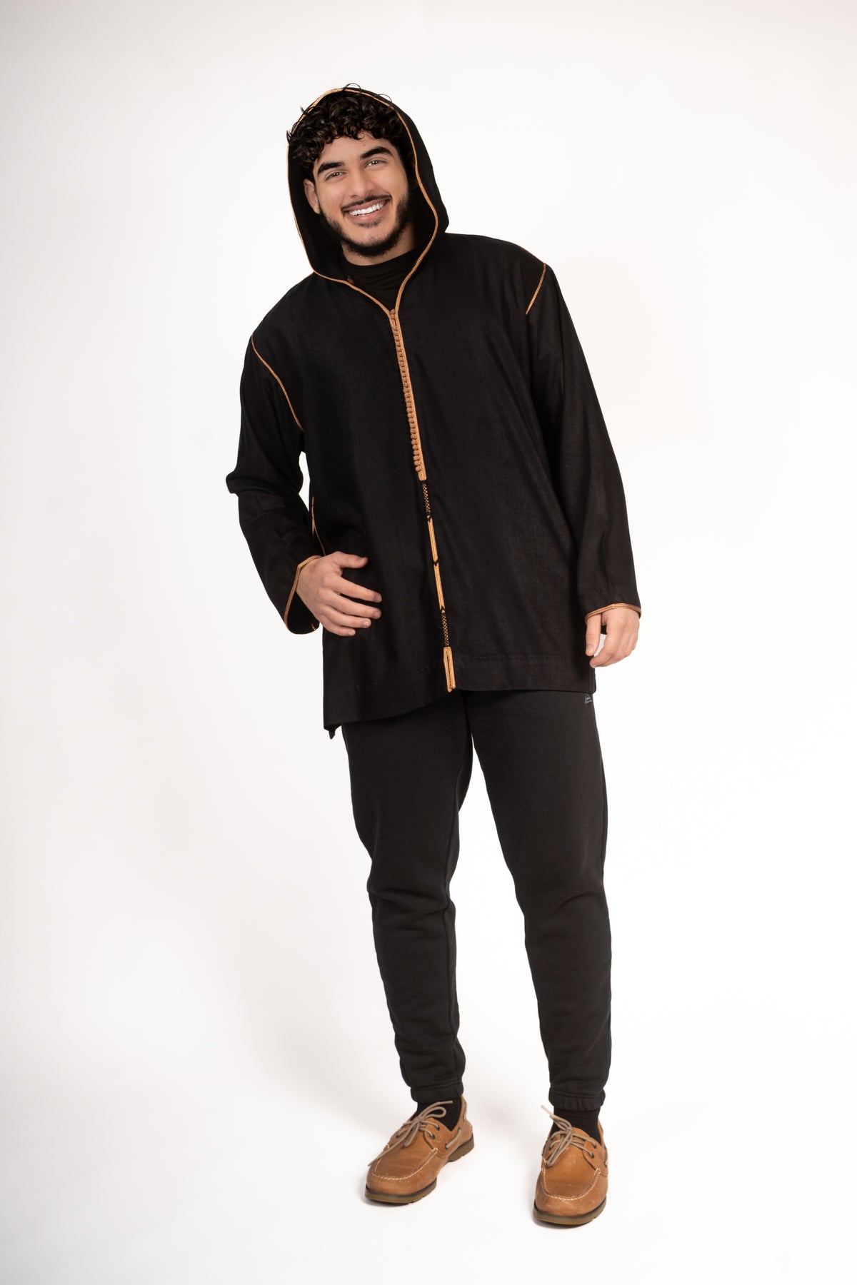 The Qobbiya Mlifa Classic – Gold Label Edition is a lightweight, premium Moroccan-style hoodie crafted from soft Mlifa Classic fabric. Hand-finished with Gold Label detailing and now featuring functional pockets, it blends traditional elegance with modern comfort — perfect for everyday wear.
